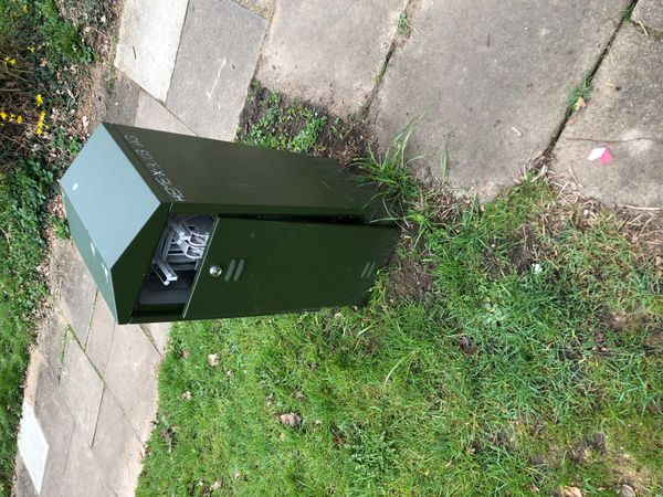 Hi DKelly1​ , thanks for letting us know about this. Please can you let us know the nearest house number to the cabinet so we can have this seen to as quickly as possible? Thanks.