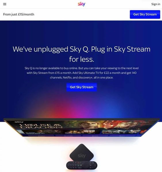 Scrolling towards the bottom of the page and the Sky Stream FAQ's section seems to "suggest" that Sky Q can be still be ordered over the phone.