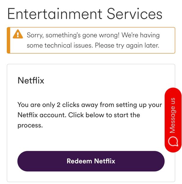Hey guys, been having this problem where I cannot redeem my free Netflix saying there is an “error” whenever I try to click to activate it. Hope someone knows a solution.