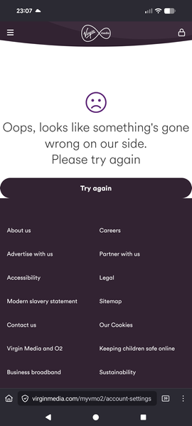 Recently set up fibre and I seem to be unable to authenticate with either VM Connect app or the website (virginmedia.com) - I'm presented with a "something went wrong"
