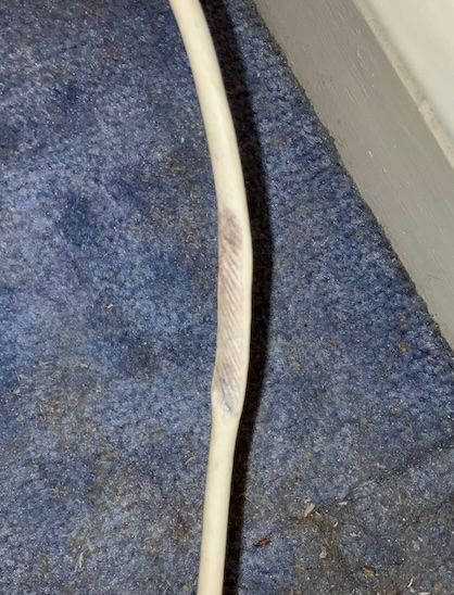 Today I discovered that my bed has been sitting on the coax cable coming into the bedroom for years, flattening it. The Internet and TV still work, but I’m concerned the damage might have been contributing to our speed being not quite as high as it should be, and/or the cable may suddenly fail cutting off our service. I suspect we may need an engineer to cut out the damage and put a new shunt on the end.