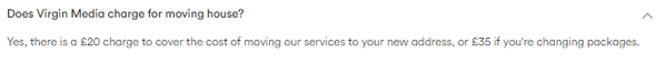 I knew this was the case that I'd be paying £20 to cover the cost of moving the services. Since Virgin have told me that I'm on a new package I'd assume that the charge would then be £35? From my latest bill...