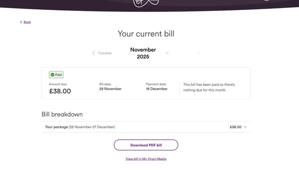 Today I tried to pay my broadband bill - I had to relink my account to the new virgin/o2 accounts system which was quite confusing and unexpected.