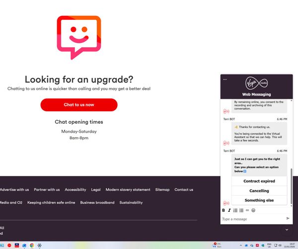 All I want to do is converse with Virgin Media to understand why my great options aren't so great.