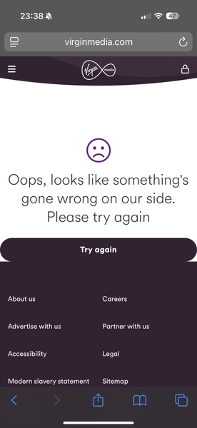 Every time I try to access my account either via the app or from the webpage I get an error message saying that there is a problem on our side.