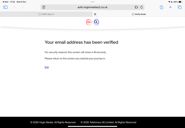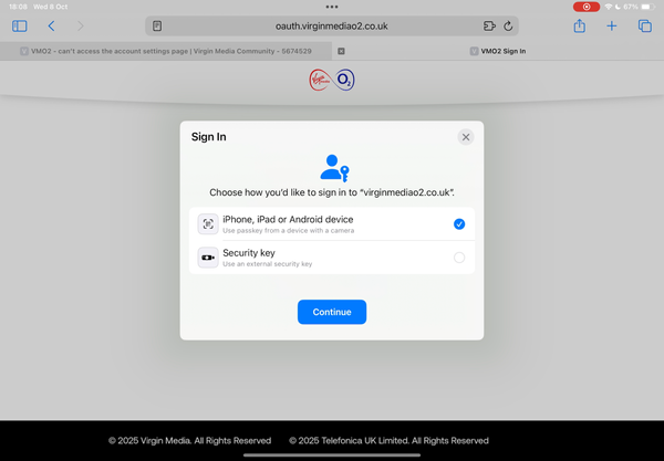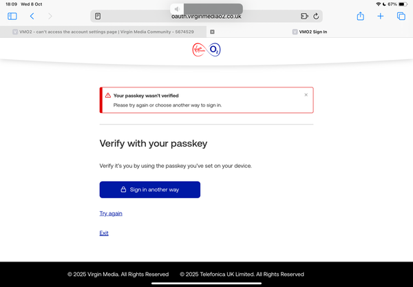 I can get access to MyO2 through the O2 website but it’s like I’m always having to verify my identity each time by a link being sent via email and pressing on that to log in. I don’t have a Passkey on the account - I deleted it. Wonder if that’s why I have issues getting to the Account Settings page, getting access to it.