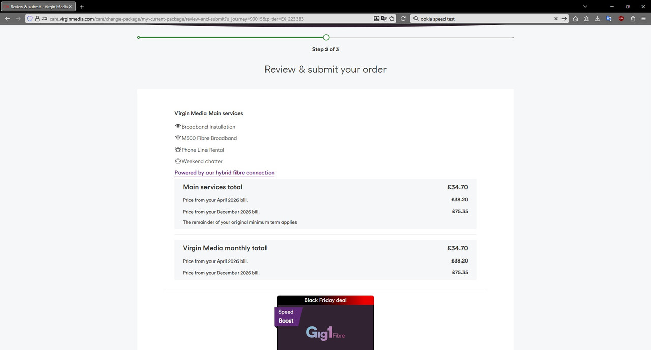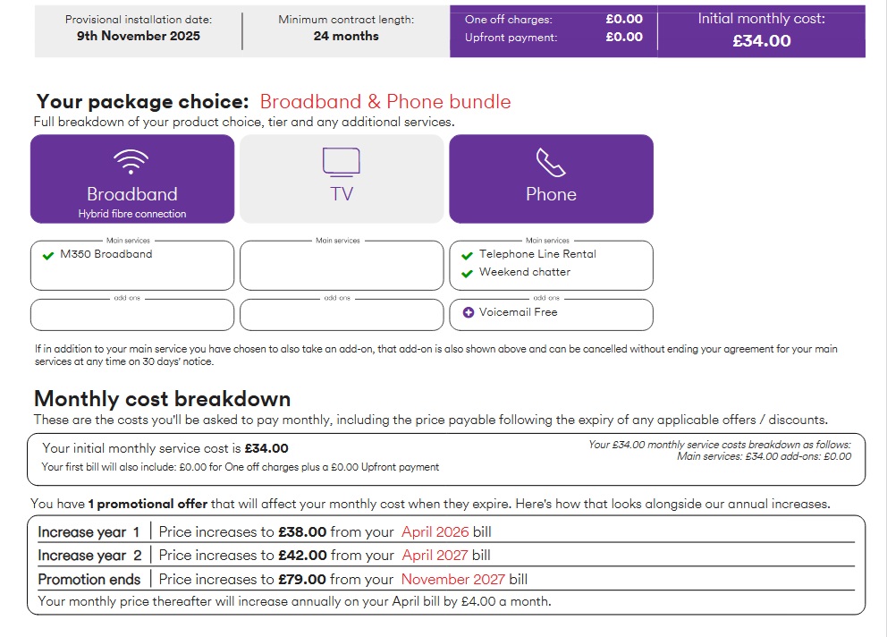 After browsing the website the other day I noticed my Black Friday upgrade deal that I could move up to 500mb for only £3 month extra with no new contract. After thinking it over I decided to do it but when I've received my pre contract documents today it's stating that I've been put on a new 24 month contract and being charged the extra £3 per month but my speed will still be 350mb.