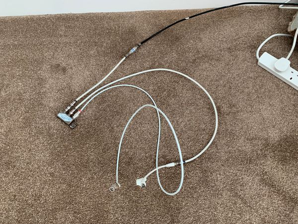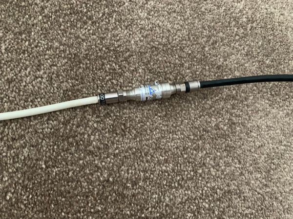 I still have Virgin Media’s brown box fitted to the front of my house outside from when I was with them previously and the cabling from that brown box which comes into my house, is currently laying dormant under the timber floor in my Front Lounge. Before storing that cabling under my Front Lounge floor, I took the photo below which shows what cabling I currently have coming in. The black cable is the one that runs into my house from the brown box outside. This then connects into the silver coloured 2 way splitter and the two white cables then exit that splitter.