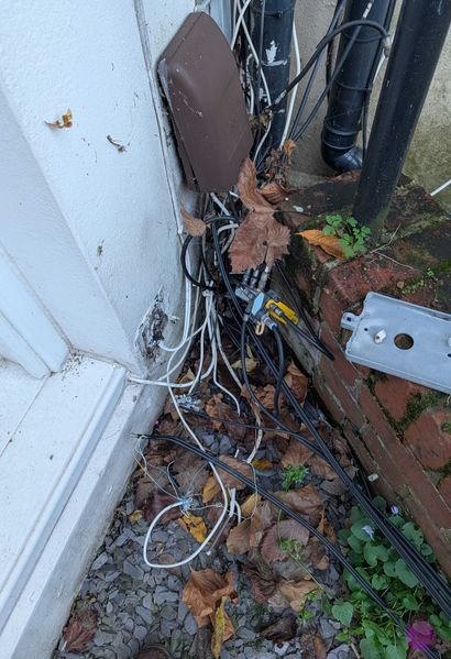 Just back from Xmas with the family and it's very obvious as it's at front of property - I noticed it straight away coax has been cut through (perhaps a new cable been added?) but in process box has been left shattered and rest of cables in a right old mess.