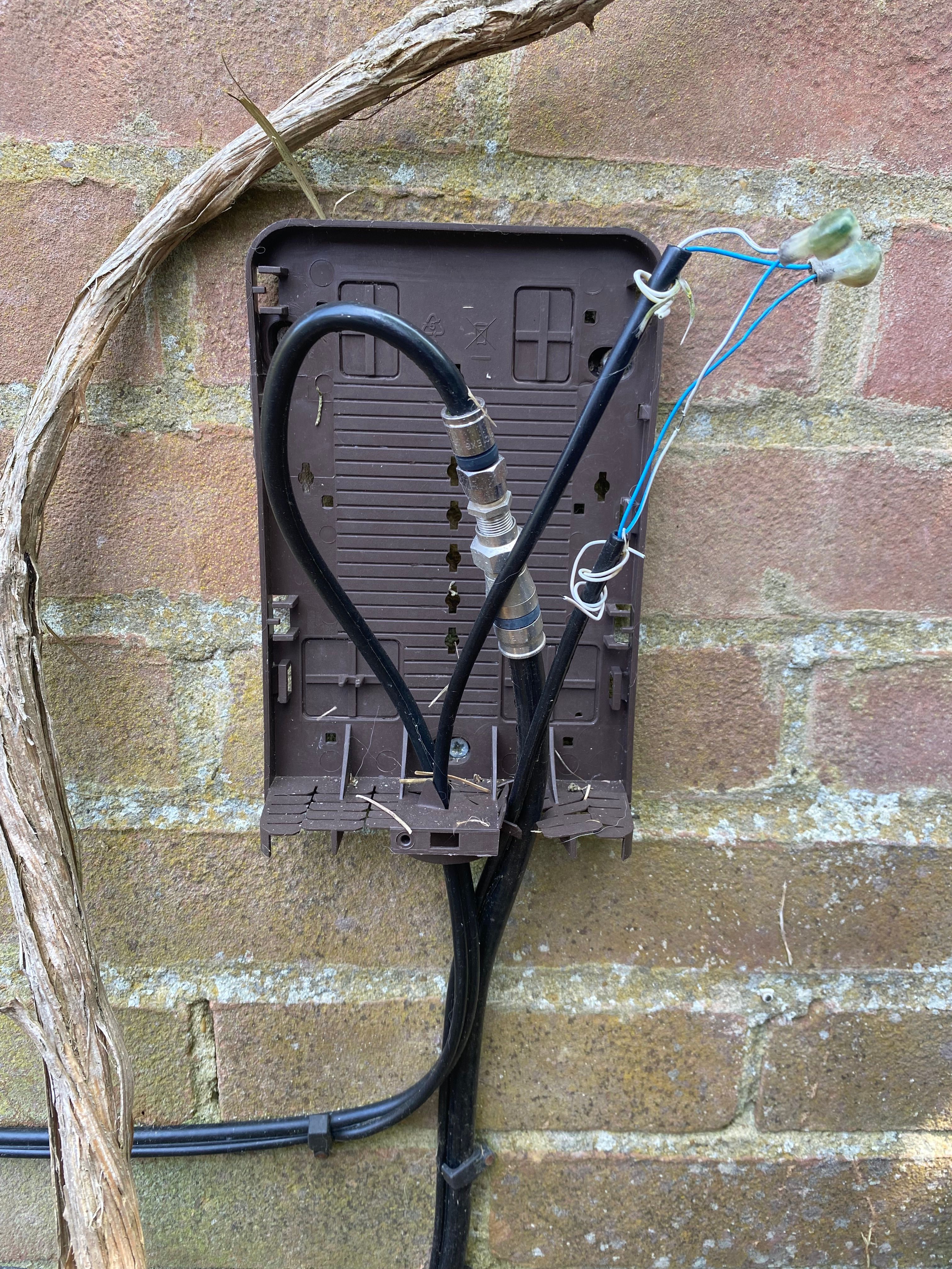 Outside brown virgin media cable box cover completely broken