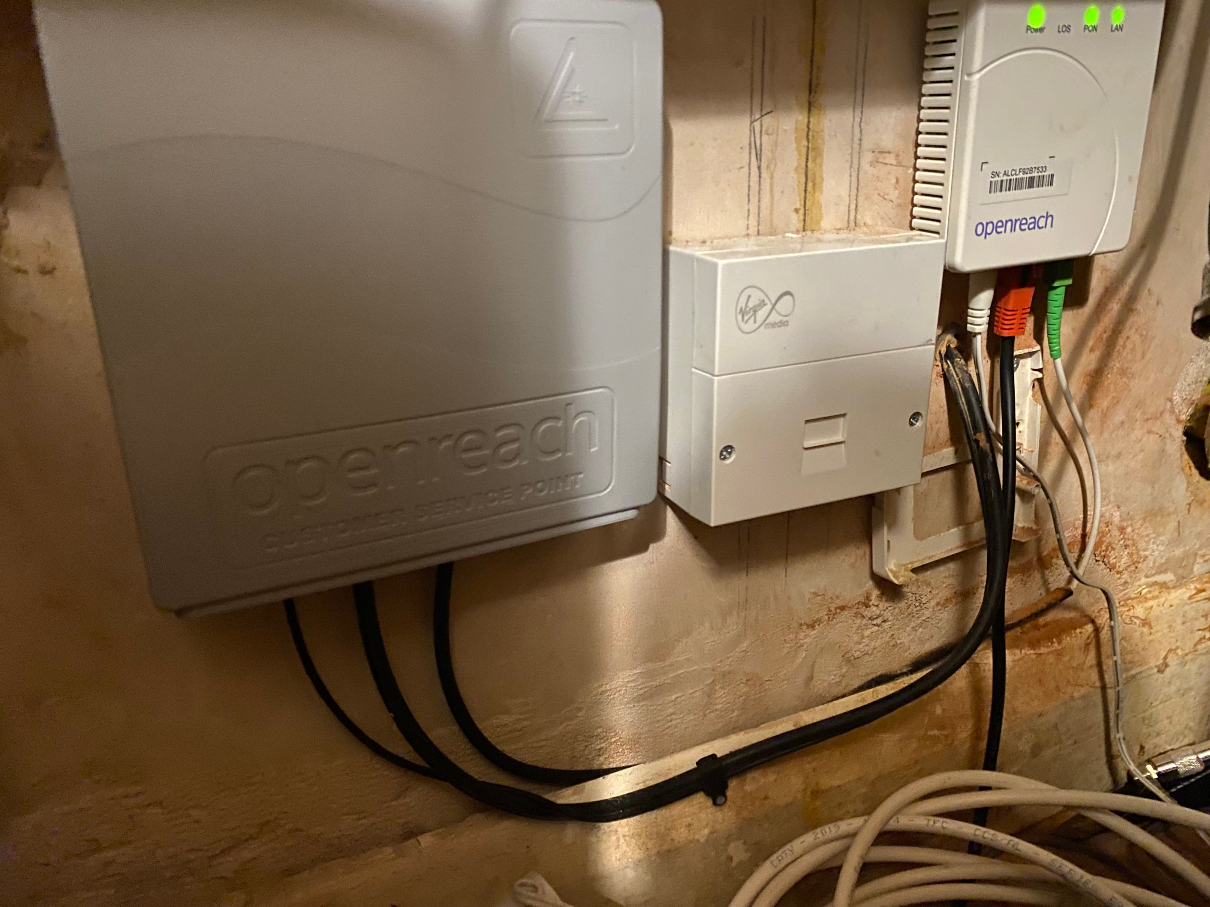 Looks like the remains of the VM wall box is the plastic plate screwed to the wall under the Openreach ONT in the last photo.