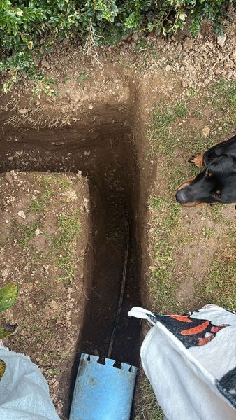 I have now dug a deep(ish) trench in line with where the cable lies with the intention that it can be dropped in the said trench but it needs extending to drop into the void.