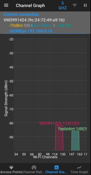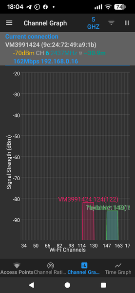 In comparison, I have 3 Wifi access points (Pods in VM speak) and the closest one to me at the moment is -36dBm and the one that is furthest away is -80dBm.