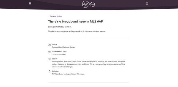 Anyway, i know these things happen no biggie and speed will hopefully go back to normal in a few hours. My issue is this...when i check for issues in my area which could be causing this the virginmedia app reports that yes there are broadband issues in my area and it won't be properly fixed until 7th January 2026.