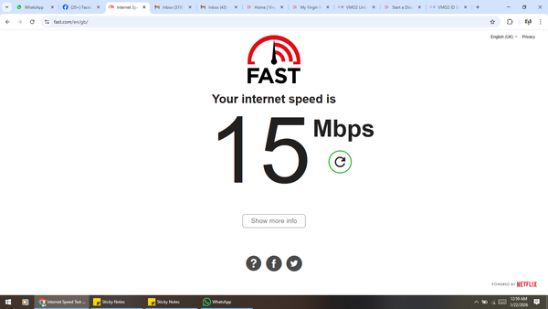 1 ReplyReplies sorted by Newest-tony-Alessandro Volta1 day agosorry but thats meaningless - how are you testing on what device - you need to test wired and post some info from the router showing levels from the config pages