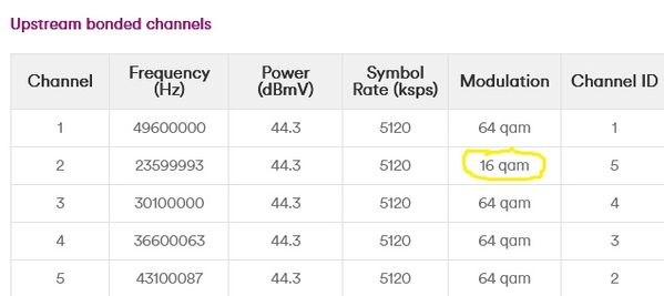 16 qam indicated there is a noise issues affecting that upstream channel.