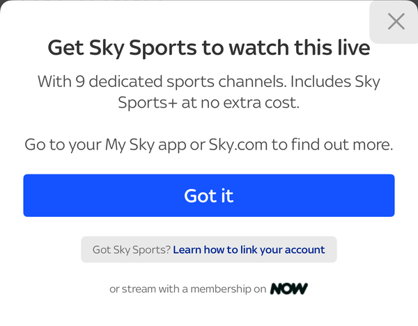 Unable to live stream on Sky Sports app