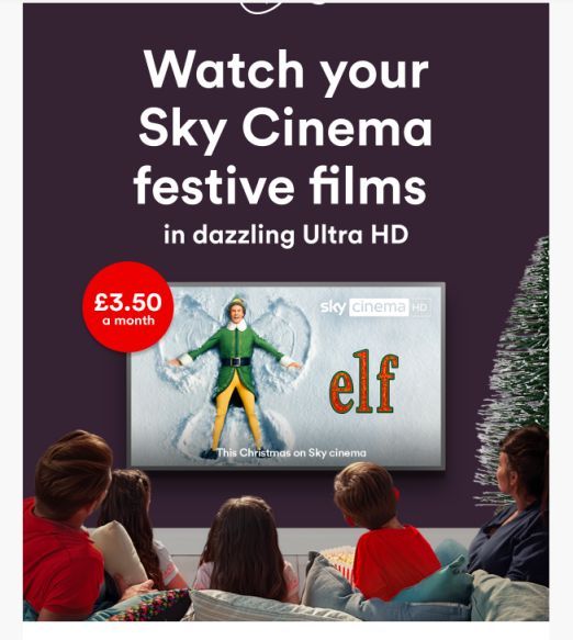 There’s nothing quite like watching festive movies with friends and family during the festive period. But wouldn’t it be even better if they were all in glorious Ultra High Definition? Add Ultra HD to your existing Sky Cinema package for a low-ho-ho price of just £3.50 a month for 24 months (£7 a month thereafter), and take your film viewing experience to a whole new level. Prices in this email are on top of your existing Virgin Media cable services monthly subscription cost. Sky Cinema UHD offer - £3.50* extra a month, for 24 months: Sky Cinema HD subscription required to take Sky Cinema channels in UHD. Sky Cinema UHD channels £3.50* extra a month when subscribing to Sky Cinema HD channels for 24 months. From month 25, you will automatically be charged the full standard monthly price for Sky Cinema UHD, currently £7 a month unless you choose to cancel by providing Virgin Media with at least 30 days’ notice. This price is on top of your existing Virgin Media cable services monthly subscription cost. Customers can cancel this subscription at anytime, by providing Virgin Media 30 days’ notice. Service usually upgraded in 48 hours, but in the case of exceptional services may take up to five working days. Sky Cinema requires a V6 or Virgin TV 360 box and a 4K compatible TV/device with HDCP 2.2. Up to 4x the clarity of standard HD content: based on comparison of HD (1920 x 1080 pixels) versus UHD (3840 x 2160 pixels). Offer ends 5 January 2026 at 23.59. General: All information and prices correct at 17-12-25. Further legal stuff applies – see virginmedia.com/legalstuff. All rights reserved. Registered office address: 500 Brook Drive, Reading, RG2 6UU. Registered in England and Wales No. 02591237.