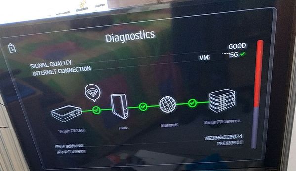 What does it say for the signal quality and connection speed in the 360's Settings > Systems> Diagnostics section? Does the diagram in that section show where the connection is failing?