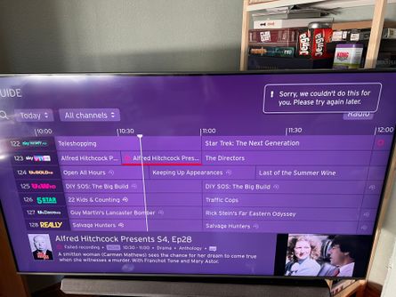 The main issue is that recordings fail. When I try to record a programme, I get the on-screen message:
