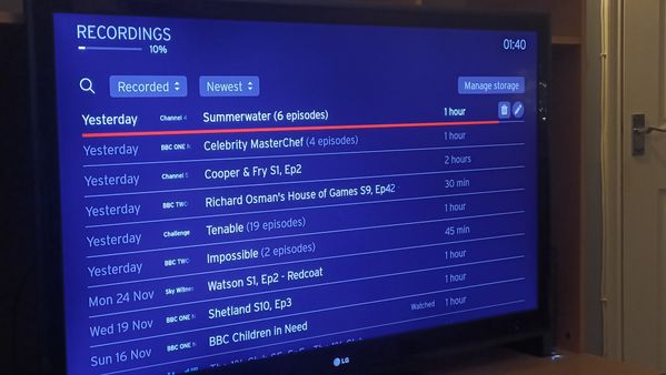 We were annoyed, but prepared to consider it a one-off, however only a week or so later, the same symptoms started happening. Instead of restarting the box, we left it as it was and watched streaming services on another device, However one day the TV360 restarted by itself, but fortunately our recordings and other data were safe this time.