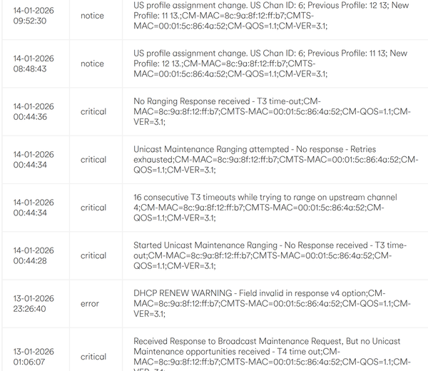 My connections constantly poor, the modems always switching doing US profile assignment changes and when this happens, I lose connection.