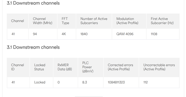 3.1 Downstream channel corrected errors are now in the BILLIONS and a fair few uncorrected errors.