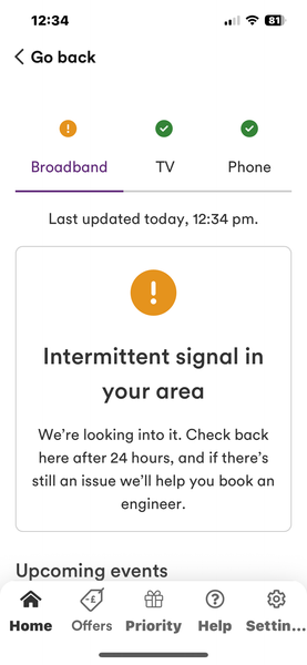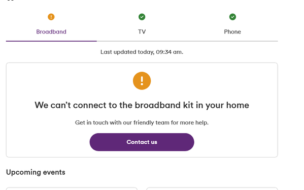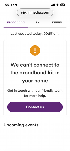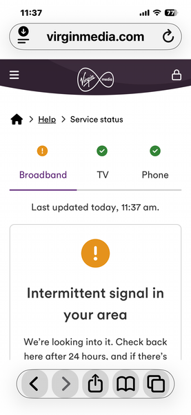 There has been a complete lack of service with my virgin broadband for over a week now. When I first reported the matter through the service status it said it was a issue on my end and virgin booked an appointment for engineer to attend. Very soon afterwards virgin cancelled this and said it was an issue on their end and two issues appeared in the service status..