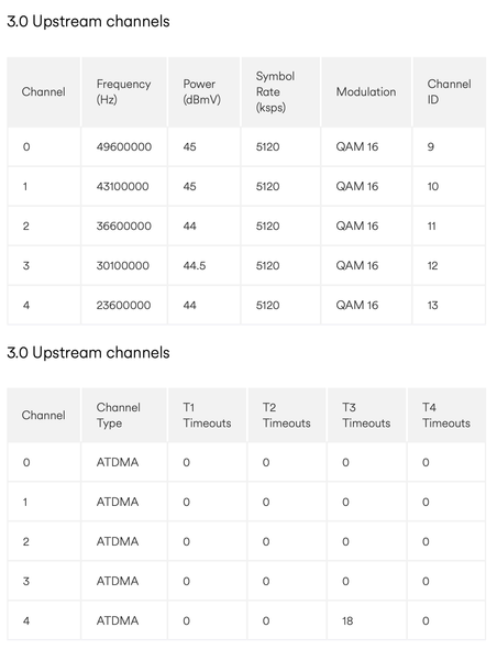 You might find that your upstream power levels are out. Can you share them (plus downstream) please.