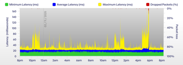 Everything points to a short-lived upstream noise or node-level issue, rather than anything inside my property. The line has been stable since, but these recurring bursts match what I’ve been observing for several months.