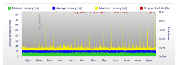 I’ve also monitored performance using ThinkBroadband BQM and observed clear packet loss and latency spikes aligning with the modem errors.
