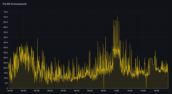 I’ve been monitoring error stats on my modem. Even after the above work, I’m still seeing excessive Pre-RS errors (tens of thousands per second, peaking at over 70k in the last 12 hours).