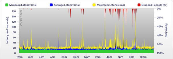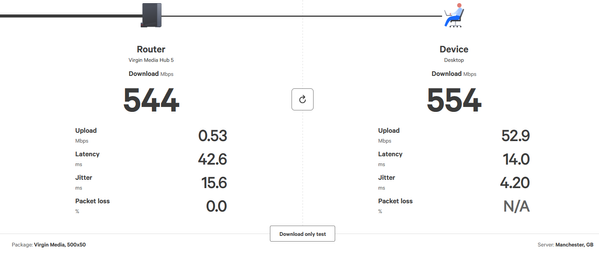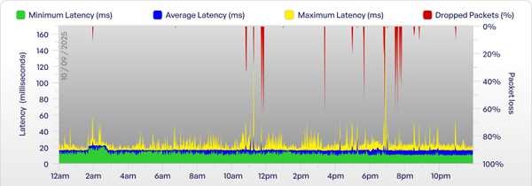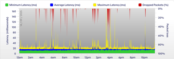 • Service status does say intermittent signal in area and i have ran through the hardware side of checking cables and resetting the power etc. Here is the cisco speed test, i had posted this already but it seems it didnt get approved.