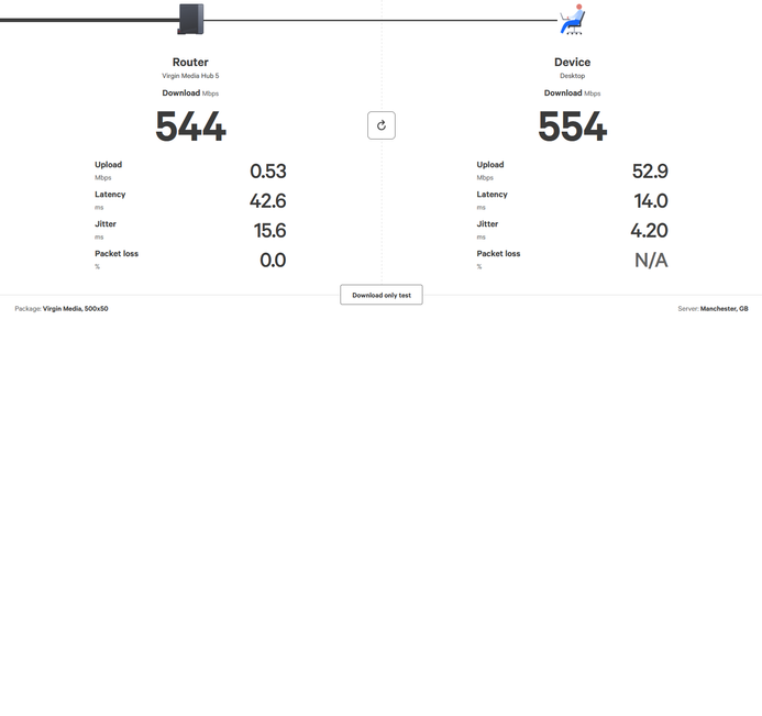 It would also be helpful if you could go to https://samknows.com/realspeed/ and click on Run Full Test so we can see what speed is going to your hub and also your device.