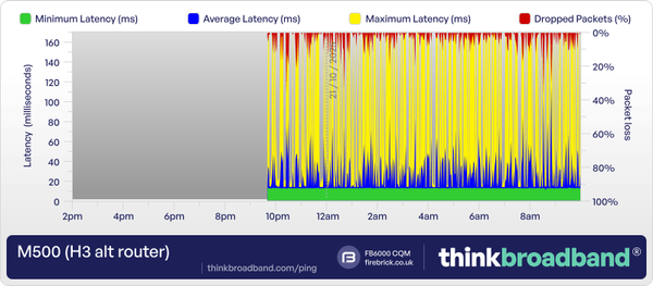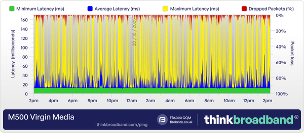 Been using my M500 broadband line for a few years now and never had problems with Virgin Media, until two weeks ago.  I started getting random latency spikes that's deeply affecting work calls and gaming.