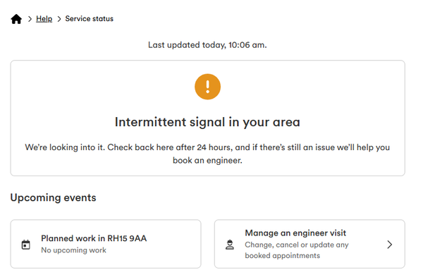 The second engineer could see the issues on his diagnostic device - the issue seemed to stem from the coaxial cable wiring inside my house (from the outside brown box).  He replaced the entire coaxial wiring with fibre and fit a new coaxial converter at the end (I'm still Hub 3). After a 45 min job and a line diagnostic on his end, he could see the issue resolved on his diagnostic device.