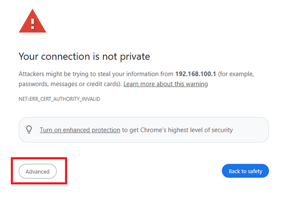 Attackers might be trying to steal your information from "192.168.0.1 (for example, passwords, messages or credit cards). Learn more about this warning