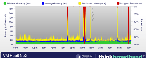 I am now getting millions of post rs errors combined across all channels and numerous of T timeouts - including tones of "16 consecutive T3 timeouts while trying to range on upstream channel" and other critical errors in network log. I rang VM middle of last week (I think it was Wednesday/ Thursday and requested Engineer visit but was asked to do the usual restart the modem and monitor. So I did that and line was ok until Saturday when post RS errors and timeouts starter to show up in high numbers again. Sunday was absolute chaos - constant disconnection of hub - literally every few seconds. watching TV, working from home all impossible. I checks for fault in my area and nothing reported via the phone number but when logged on to VM website at first it was showing things in green - then all of the sudden Intermittent Signal in your area.