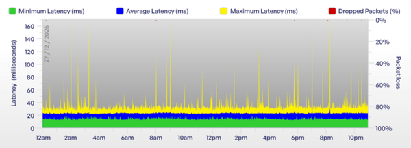 - Latency and packet loss increase on the ThinkBroadband BQM