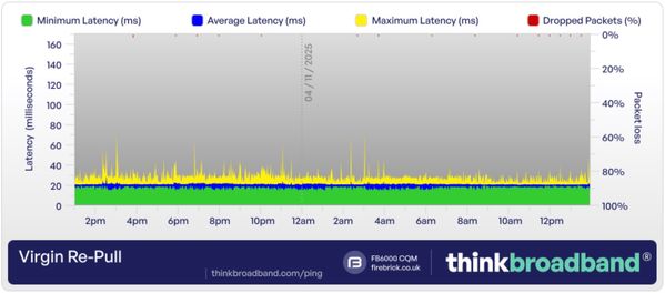The packet loss may look minor but it is enough to loose connection and loose enjoyment in all media due to the unexpected constant random interrupts.