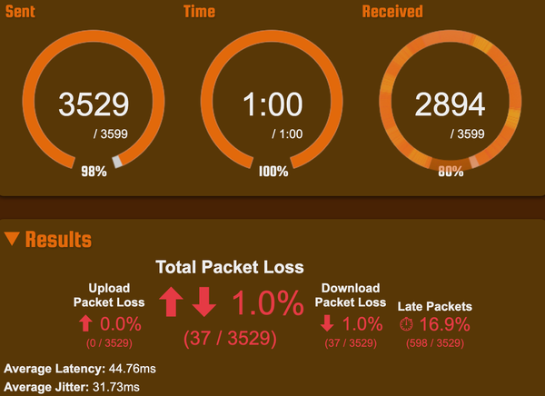 - This is excellent – basically no packet loss coming from the 3.0 part of the spectrum.