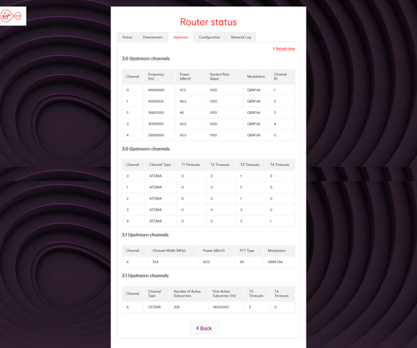 In the last few weeks I've noticed short outages which look to be caused by T3 timeouts, they seem to be at random but cause loss of service when in the middle of doing something (games, voice chat, work, streaming, etc). I think it might be related to noise on upstream as the logs show the channels switching back and forth although downstream error count is huge. I've tried the usual of checking connections and leaving the Hub5 powered off for a while but it keeps coming back.