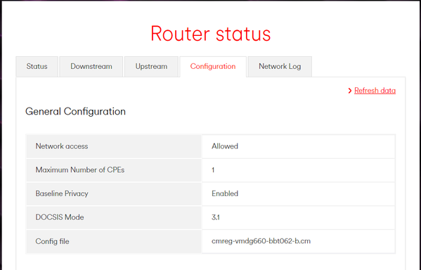 The Virgin Media Networks team have changed something. Everything is working as expected now, and the internet connection is stronger and faster than ever before!