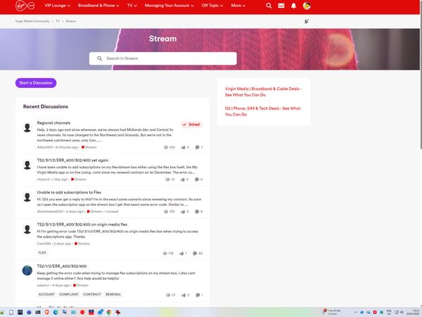 tried dumping cookies for Virgin site, but that hasn't solved my START A DISCUSSION issue.