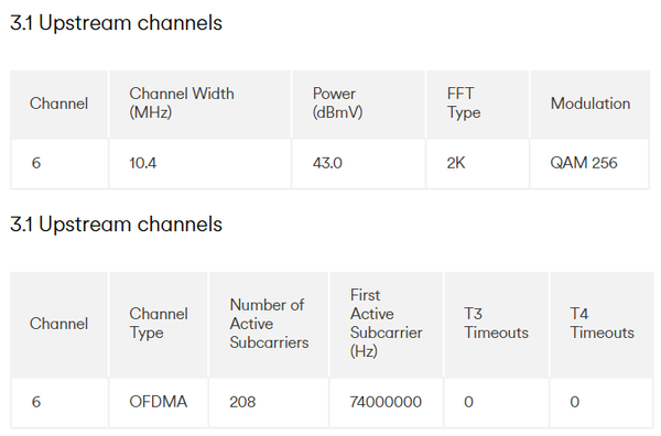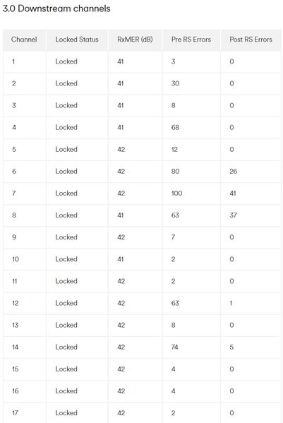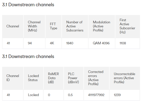 While looking at the Hub 5 stats, I did notice that on the Downstream 3.1 there was a lot of Corrected errors, and a thousand odd of Correctable errors. What stood out to me was the RxMER Data (dB) is at 0.
