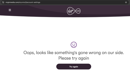 My broadband service started in early November, and everything has been working fine except I can’t access account settings. The page won’t load and shows: “Oops, looks like something's gone wrong on our side. Please try again.” This also applies to the manage payments page. Both symptoms persist in web browser and the mobile app. So, part of my virginmedia is not functional at all. I’ve tried: Multiple devices (laptop and phone) Different browsers Clearing cookies/cache Using the mobile app I have seen many users having this issue. Please help resolve it. Happy to provide further details if required.68Views0likes5Comments