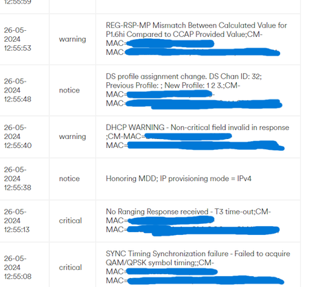 Hello, a few months ago we upgraded our wifi to Virgin Media's 1.1gbps internet, everything was running smoothly until recently where we've noticed that the internet keeps crashing/dropping connection. Whilst this has only occurred a couple of times for me on my ethernet, mobile devices seem to be having a lot of trouble, I also noticed some errors in the network logs aswell as some potentially abnormal readings on the upstream/downstream channels, if there are any tech experts out there I'd appreciate some advice on what this issue might be.Internet dropping every few hours, lost packages, intermittent connection (few years already)