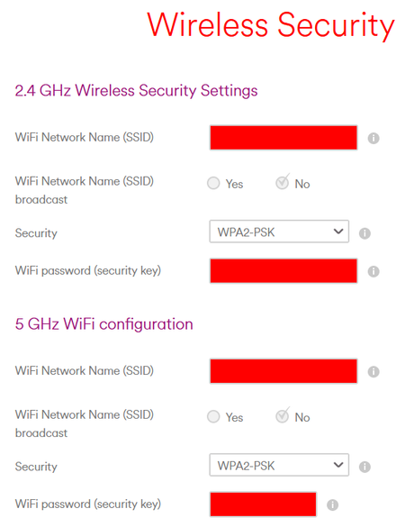 Today, when connecting a new device, I needed to broadcast my Wi-Fi's SSID for the new (garbage) device that I was trying to connect. So I logged in to 192.168.0.1 and navigated to Advanced settings > Wireless > Security, only to find that WiFi Network Name (SSID) broadcast was greyed out for both 2.4GHz and 5GHz. I have never seen this option greyed out before, as I was able to to disable SSID broadcasting during my setting up of the SuperHub 3.0. During my setup, I always changed the SSID to my own, change the password to something longer and more complex and hide the SSID. Overkill perhaps, but that's how I've had my Wi-Fi setup for about 10 years now and it's always worked for the majority of the time. I've pinhole reset the SuperHub, contacted support (who were able to turn SSID on and off as per my requests) and tried Edge browser (I use Firefox as my main browser). I'm at a loss now and I think that some firmware update or software change on the SH3 has caused this issue. If anybody has any pointers, suggestions or even a solution, I'm all ears!8.3KViews1like67Comments