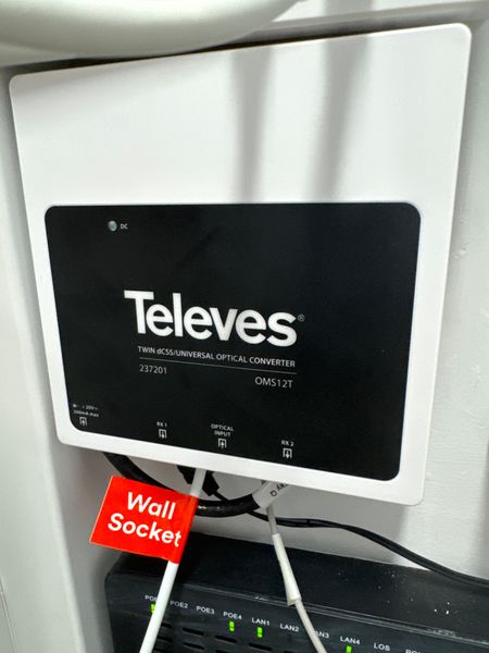 Hi all! I recently moved home and VM told me QuickStart installation would be possible at the new address. I tried to install the broadband but there wasn’t any VM wall socket. The only thing I can find that would fit the cable is an optical converter? I’ve attached a photo in the post. Is this where the cable should go? Thanks in advance! Edit: When I turned the hub (hub 3) on, it keeps on flashing the green light with the wifi icon lit up as green too.Wall socket doesn’t fit